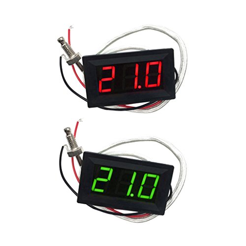 Fenteer 温度計 デジタル LED -30〜800℃ 2個入り 熱電対 Kタイプ パネル型 プローブ付 赤&緑 高精度