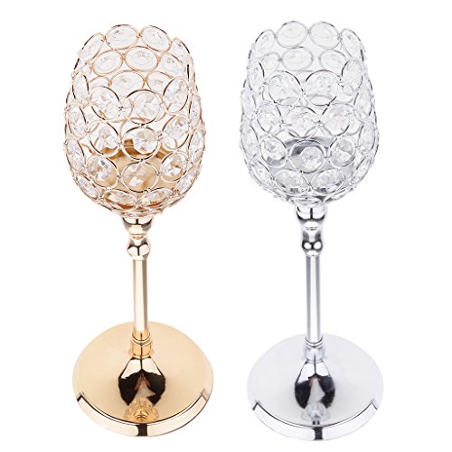Fenteer ウェディングセンターピース ティーライトホルダー ゴールドシルバー クリスタルキャンドルホルダー