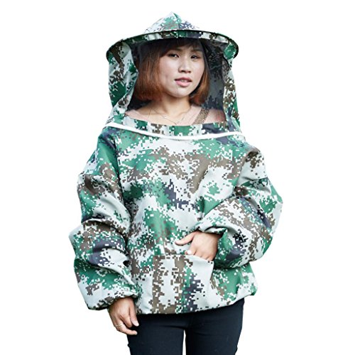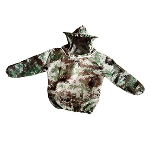 Fenteer 養蜂用品 ジャケット ベール付き帽子 迷彩 全3種 ウエストバンド付き 保護服 - 迷彩1