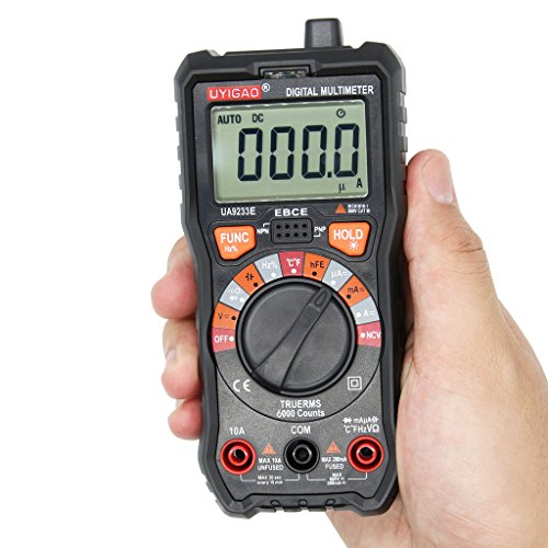 - AC / DC電圧、電流、抵抗、周波数、温度、ダイオード試験、デューティサイクル、hFE、NCV、静電容量などを測定します。