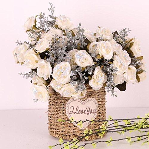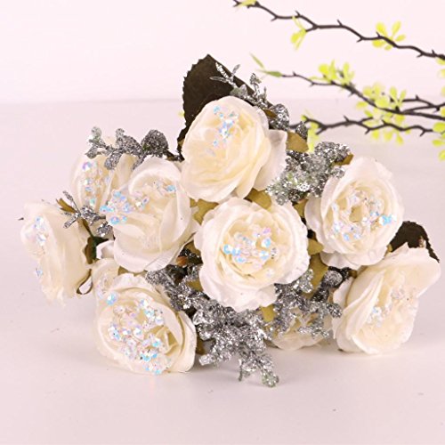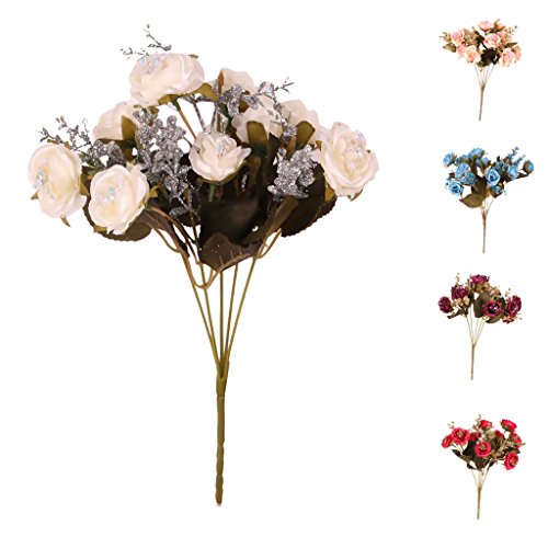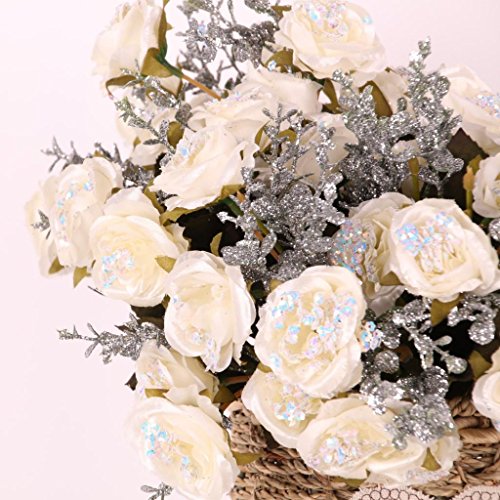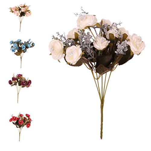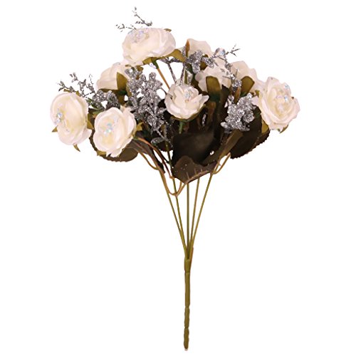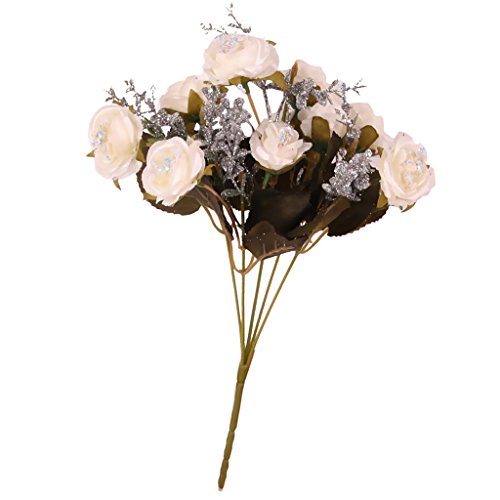 Fenteer カラフル 天然シルク 人工フラワー 装飾ブーケ 人工花 パーティー 結婚式 飾り用 全5色選ぶ - 白