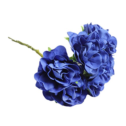 Fenteer 多種選べる 6頭/束 人工花 造花 牡丹 ブーケ DIY 結婚式 家庭 装飾 - サファイアブルー, 5x9.5cm