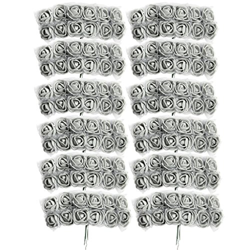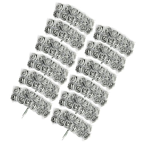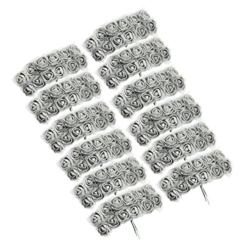 Fenteer 約144個 ミニチュアローズ フラワー 造花 結婚式 花束 DIY 工芸品 装飾 バラ 結婚式 パーティー ベビーシャワー バレンタインデー 多色選べる - グレー