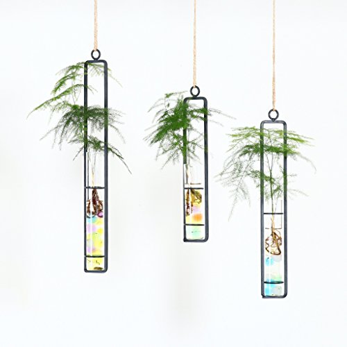 Fenteer 高品質 繊細 デザイン 鍛造鉄 試験管 チューブ 透明 ガラス ぶら下げ 花瓶 装飾 工芸品 部屋 装飾 全3種類 - C