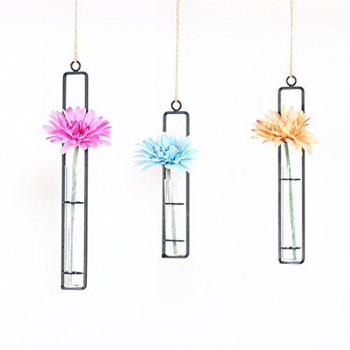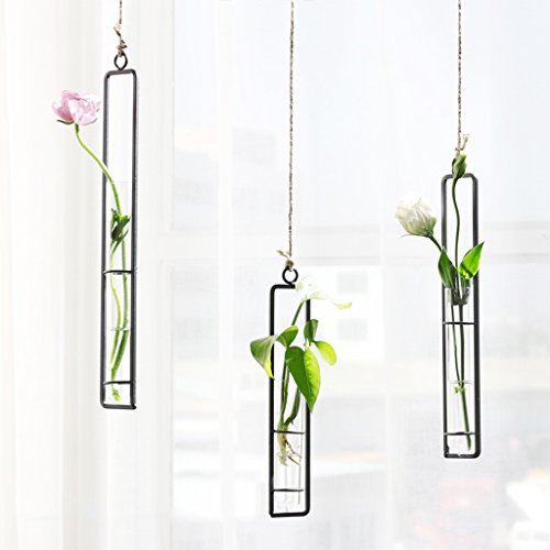 Fenteer 高品質 繊細 デザイン 鍛造鉄 試験管 チューブ 透明 ガラス ぶら下げ 花瓶 装飾 工芸品 部屋 装飾 全3種類 - B