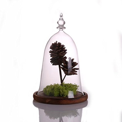 Fenteer 観葉植物カバー 透明 ガラスカバー ベル形 花瓶 全3色選択 インテリア 花器 コンテナ トレイ付き デコレーション - カラー1