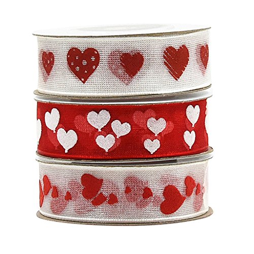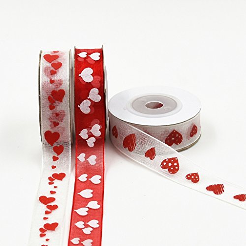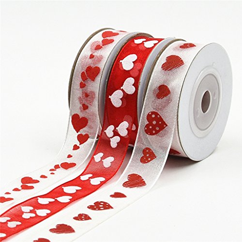 Fenteer ラブハート オーガンザ サテンリボン DIY クラフト用品 トリム リボン フラワーアレンジメント スクラップブッキング アクセサリー