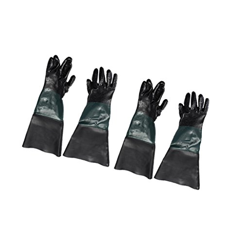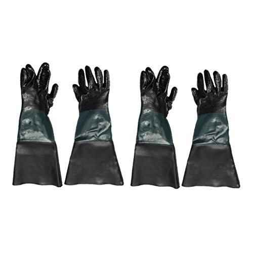 Fenteer サンドブラスト用 保護手袋(60cm) 2ペア ロング PVC+綿製 吸汗 快適 柔らかい