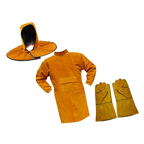 Fenteer 3点 溶接用 ロングコート 防護服セット 作業用手袋 作業用キャップ帽
