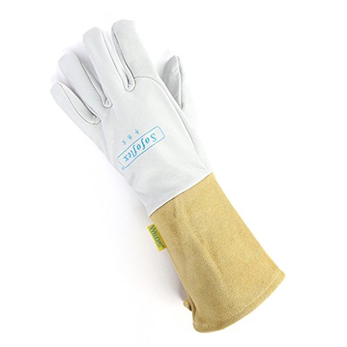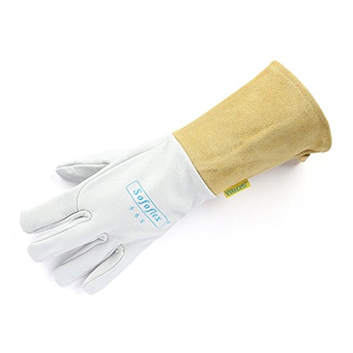 Fenteer 溶接手袋 作業用 牛革製 熱や磨耗に強い 快適性 4色 - ホワイト