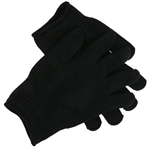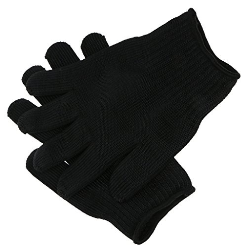 Fenteer 高品質 防刃手袋 作業用 耐切創レベル5 高強度ポリエステル 耐摩耗性 ブラック&グリーン - 黒