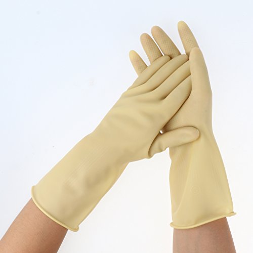 Fenteer ニトリルゴム作業手袋 耐溶剤 耐油性 耐摩耗性 化学物質保護 連続使用 1対 全4サイズ 全2色 - S, ベージュ