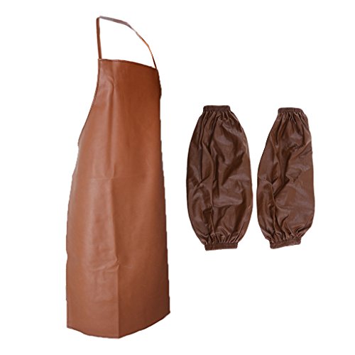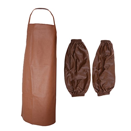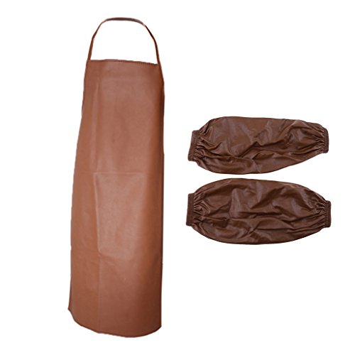 Fenteer 3点セット 工業 加工用 エプロン ホーム キッチン 調理 エプロンドレス と 袖 カフ 全2色選べる - 褐色