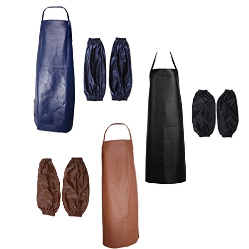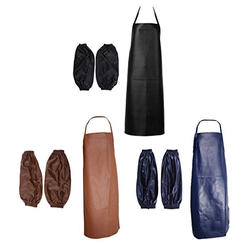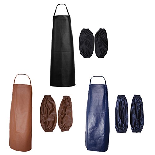Fenteer 3点 9点入り 防水 PU エプロン ホーム キッチン 調理 エプロンドレス と 袖 カフ