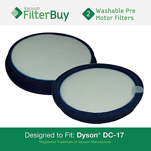 2 - Dyson DC17 (DC-17) Pre Motor Washable & Reusable Replacement Filters, Part 911236-01. Designed by FilterBuy to fit All Dyson DC-17 Upright Vacuums Cleaners.