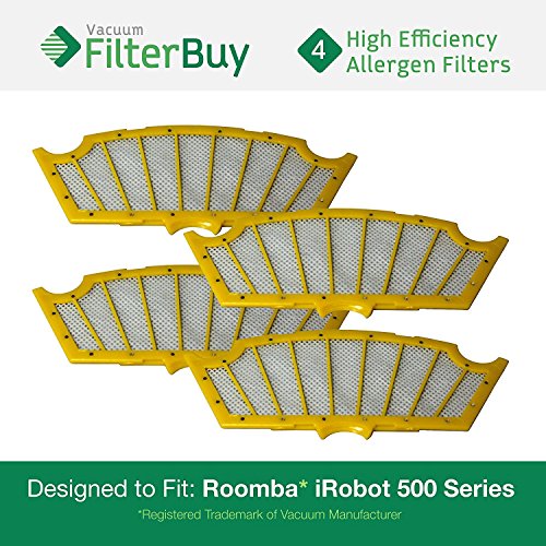 4 - iRobot Roomba 500 Replacement Filters. Designed by FilterBuy to replace all iRobot 81501 & Roomba 500 Series Vacuum Filters