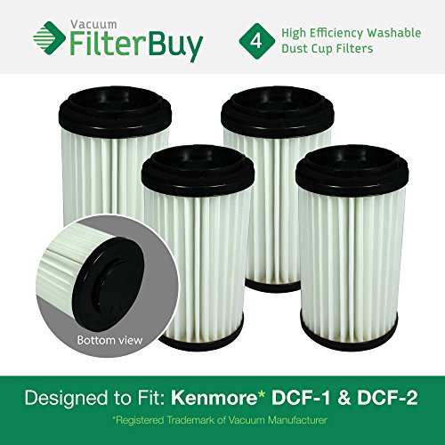 4 - Kenmore DCF-1 DCF-2 Washable & Reusable Allergen HEPA Filters, Part 's 82720, 471178 & 82912. Designed by FilterBuy to fit Kenmore Upright Vacuum Cleaners