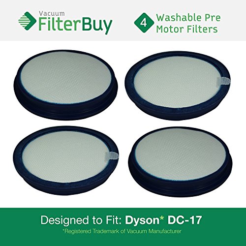 4 - Dyson DC17 (DC-17) Pre Motor Washable & Reusable Replacement Filters, Part 911236-01. Designed by FilterBuy to fit All Dyson DC-17 Upright Vacuums Cleaners.