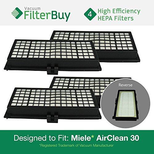 4 - Miele Active AirClean 30 HEPA Filters, Part AAC30 & SFAA30. Designed by FilterBuy to fit Miele models S7000-S7999, S2000-S2999, S300i-S858i.