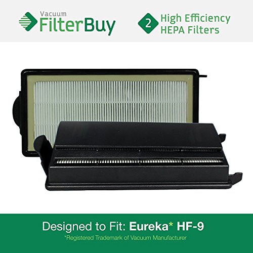 2 - Eureka HF-9 (HF9) HEPA Replacement Filters, Part 's 0951A, 60951B, 60285. Designed by FilterBuy to fit Eureka Victory Upright Vacuum Cleaners.