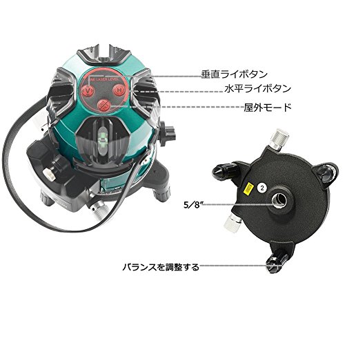 - 【レーザー墨出し器+受光器セット】明るい場所や屋外でもブザーとランプでラインの位置を検出できます。全周回転微調整付なので素早く床墨、たち墨の位置合わせができます。