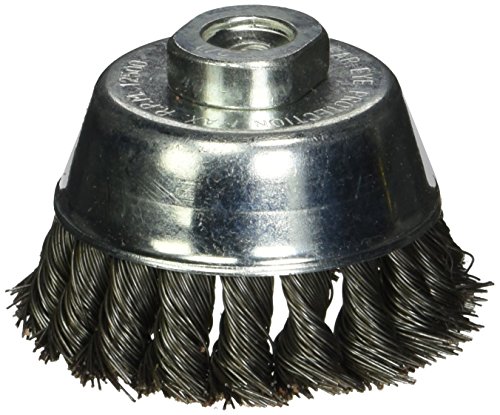Perfect for use in restricted or hard-to-reach areas. The Firepower 1423-3159 Wire Cup Type Crimped Carbon Steel Wire Brush has a 3/8-inch - 24 NF threaded arbor, a 3-inch cup diameter, 0.020-inch high quality tempered carbon steel wire and a 12,500 maximum RPM. Firepower wire cup brushes are designed for use on portable power tools. Firepower brushes provide fast cutting action for removal of light encrustation of scale, slag, rust, paint or weld splatter. The relative high flexibility of fire power wire cup brushes allows cleaning on irregular surfaces as well as flat surfaces. This small diameter, heavy-duty cup brush has arbor adapters and threads to fit most grinders and is designed for use in restricted or hard-to-reach areas.