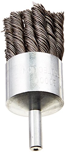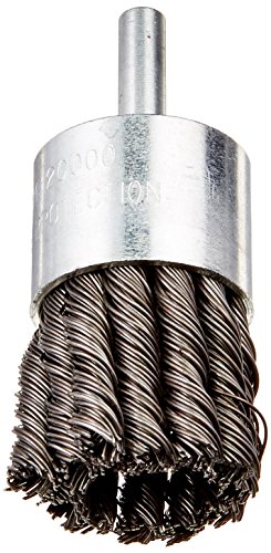 For use on portable air and electric tools. The Firepower 1423-2118 Knot Type Crimped Wire End Brush has a 1-1/2-inch diameter, a 1/4-inch shank, 0.020-inch carbon steel wire size and a 20,000 maximum RPM. Firepower small diameter wire brushes are designed for use in restricted or hard-to-reach areas. They are excellent for debarring, blending and cleaning of surfaces. Small diameter brushes are especially designed for use on portable air and electric tools. End brushes are great for cylinder heads, pistons and valve ports, rubber and plastic flash removal, removal of rust, paint scale, tool polishing and weld cleaning.