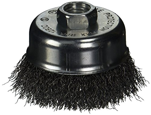 Perfect for use in restricted or hard-to-reach areas. The Firepower 1423-2109 Wire Cup Type Crimped Carbon Steel Wire Brush has a 5/8-inch - 11 threaded arbor, a 3-inch cup diameter, 0.014-inch high quality tempered carbon steel wire and a 12,500 maximum RPM. Firepower wire cup brushes are designed for use on portable power tools. Firepower brushes provide fast cutting action for removal of light encrustation of scale, slag, rust, paint or weld splatter. The relative high flexibility of fire power wire cup brushes allows cleaning on irregular surfaces as well as flat surfaces. This small diameter, heavy-duty cup brush has arbor adapters and threads to fit most grinders and is designed for use in restricted or hard-to-reach areas.