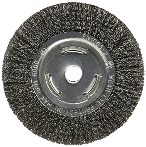 Maximum RPM of 6,000. This Firepower 1423-2122 Crimped Type Carbon Steel Wire Wheel Brush has a 6-inch diameter, a 1-inch width, 0.014-inch wire size, 5/8"-1/2" arbor hole and a maximum RPM of 6,000. Firepower wire wheel brushes are designed for tough jobs. Each wheel contains an equal number evenly-distributed, top quality high carbon tempered wires, which gives the wheel an exact balance and long-life. Firepower brushes are well-suited for use in the welding and fabricating industries. They are used for surface preparation prior to welding and brazing and for removing weld scale and spatter after the welding operation.