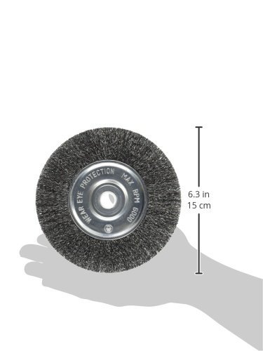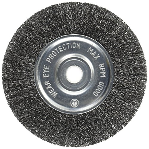 Maximum RPM of 6,000. This Firepower 1423-2121 Crimped Type Carbon Steel Wire Wheel Brush has a 6-inch diameter, a 1/2-inch width, 0.014-inch wire size, 5/8"-1/2" arbor hole and a maximum RPM of 6,000. Firepower wire wheel brushes are designed for tough jobs. Each wheel contains an equal number evenly-distributed, top quality high carbon tempered wires, which gives the wheel an exact balance and long-life. Firepower brushes are well-suited for use in the welding and fabricating industries. They are used for surface preparation prior to welding and brazing and for removing weld scale and spatter after the welding operation.