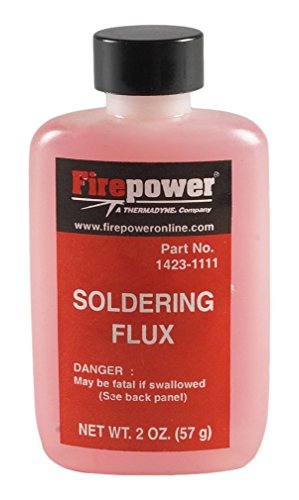 2 ounce bottle. Firepower 1423-1111 Liquid Soldering Flux is active between 200 and 600 degrees F. It helps keep the gun's element clean, reinforces the solder bond and is very effective on copper and repairing automotive radiators. 2 ounces.