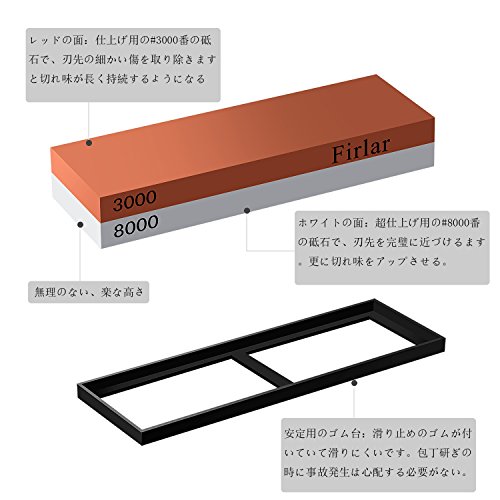 Firlar 砥石 両面砥石 研ぎ器 包丁 家庭用砥石 初心者 中砥石3000#8000 全ゴム台付