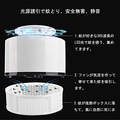 - 【薬剤不使用、 物理蚊取】蚊、虫を吸引ファンで本体のカゴに吸い込み、蚊はカゴから逃げ出せずに風化死滅します、安全&安心。赤ちゃんやペットがいる家庭にはご安心に使用いただけます。