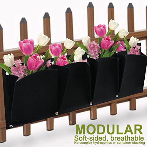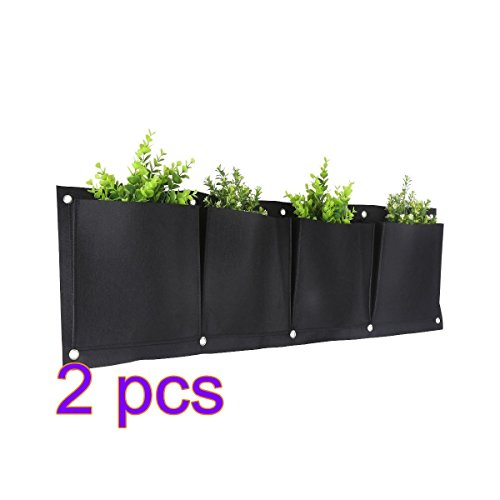 Firlar 家庭花園 植え袋 園芸用 ガーデン用 4ポケット 壁掛け式 植栽バック 布プランター 2Pcs(B)