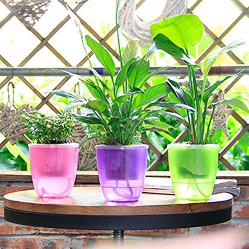Firlar 水耕栽培 植木鉢 盆栽 自動散水ポット 園芸 ガーデン用 多肉植物 カラフルなプラスチック製の栽培植え鉢 5色選る