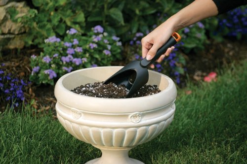 Fiskars FiberComp Soil Scoop is lightweight for easy handling and ultra-durable for lasting value. It features an oversized scoop to help you get more done faster, a one-piece design that will never loosen or bend and a handle hang hole for convenient storage. The rust-proof FiberComp construction is lightweight yet still stronger than steel.