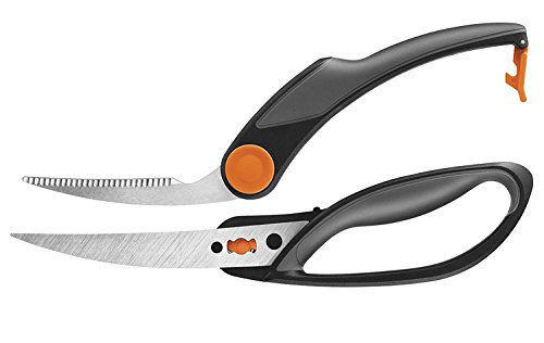 - Heavy-duty Butcher Shears & All-purpose Kitchen Shears feature serrated blades for better grip, a power notch to reduce blade wear and convenient take-apart designs