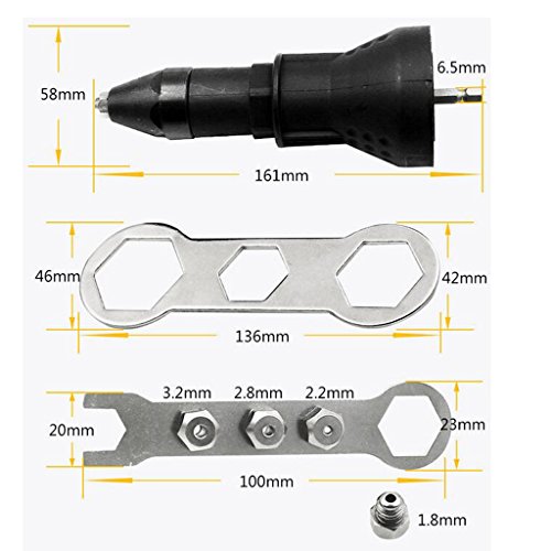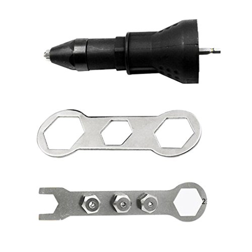 Fityle リベットナットガン コードレスドリル用 電気リベットドリルアダプタ 小型 低ノイズ リベットガン 黒&青 - ブラック