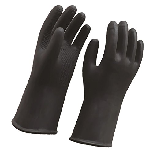 Fityle 作業手袋 ゴム ラテックス 全7サイズ選択 消毒 清掃 家事 工業用 ガーデングローブ 安全保護 1ペア 黒&白 快適 - ブラック50cm