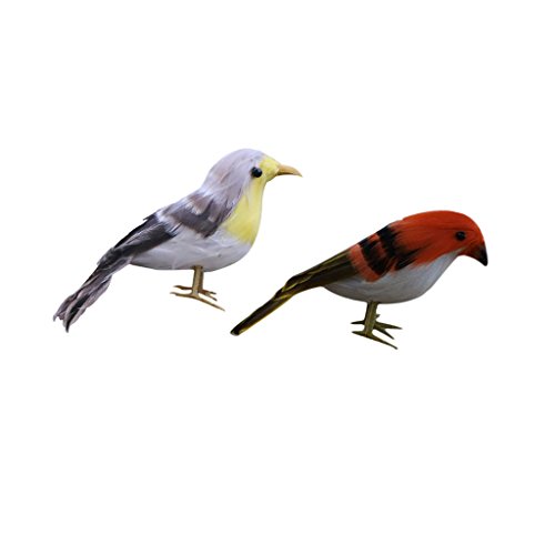 Flameer 鳥の装飾 2点セット 置物 現実的 人工フェザー 3種選択 工芸品 ホーム ガーデン 高品質 - スズメ
