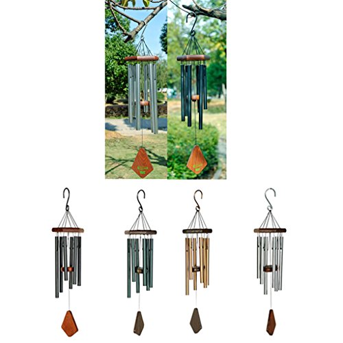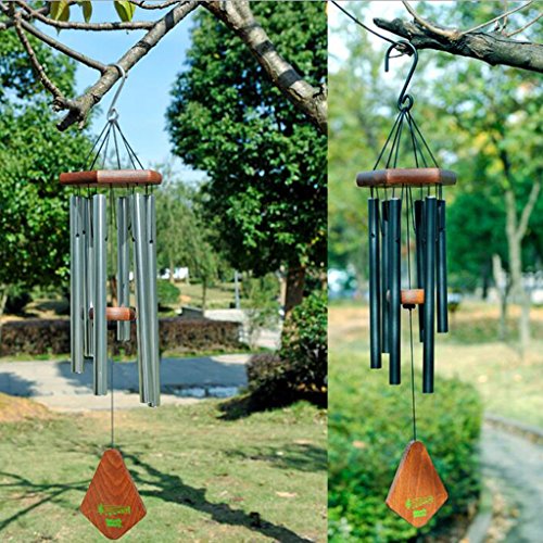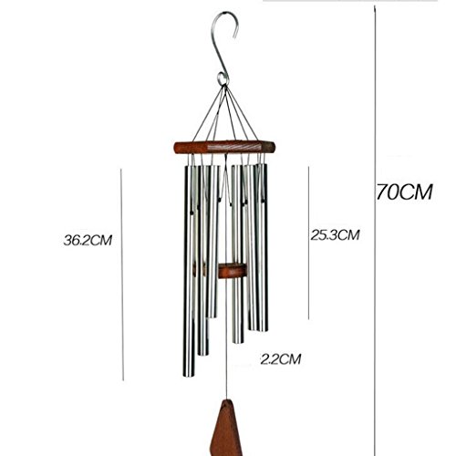 Flameer 風鈴 6本金属チューブ 4色選択 納涼 癒し音 インテリア 窓 玄関チャイム 木製ハンマー - シルバー