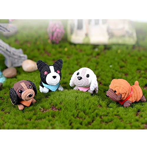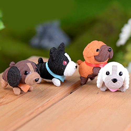 Flameer 多種選択可 マイクロ景観装飾 庭の装飾 ミニチュア 樹脂製 インテリア 盆栽 園芸 ドールハウス - 4匹の犬