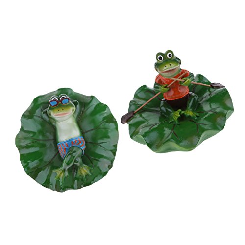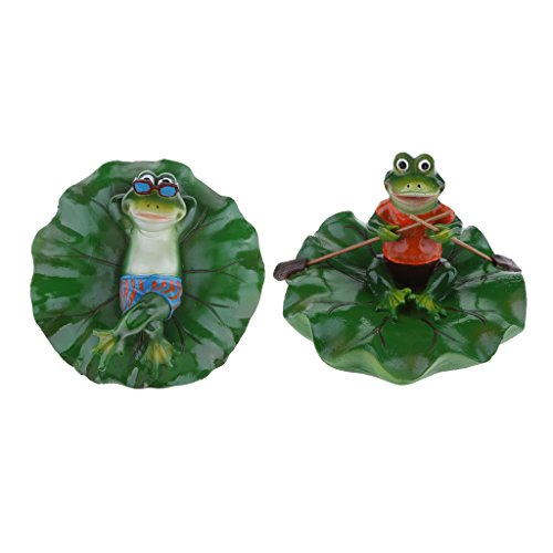 Flameer 2点セット カエル フローティング 蓮の葉 池の装飾 現実的 ガーデン 飾り物 グリーン