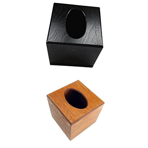 Flameer 木製 ティッシュペーパーボックス 収納ケース ホーム 車用 ブラック&ブラウン 正方形&長方形 高品質 - 正方形