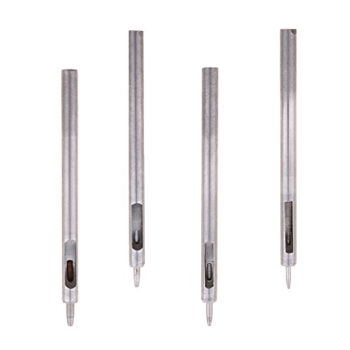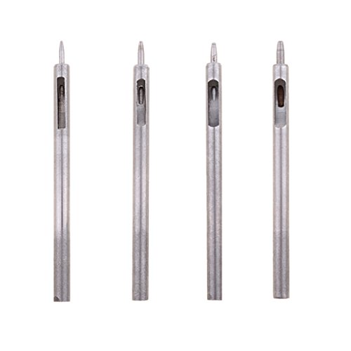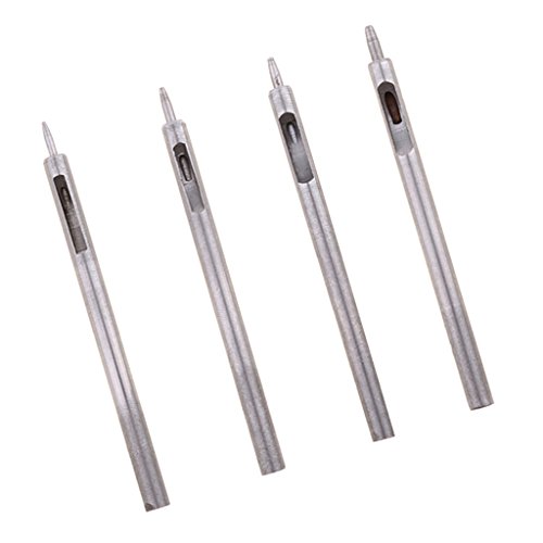 Flameer 穴あけパンチ(4本) レザークラフト 皮抜きポンチ 0.5mm/0.8mm/1.0mm/1.5mm 丸穴 シルバー