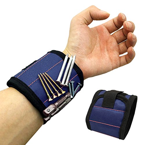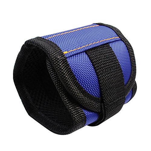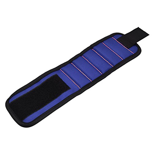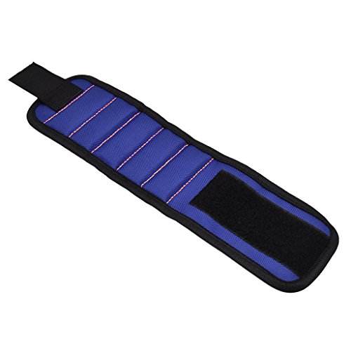 Flameer 磁気リストバンド 作業用 超強力マグネット付き(5本) 3色選択 紛失防止 小部品 ネジ ドリル用 フリーサイズ ユニセックス - 青