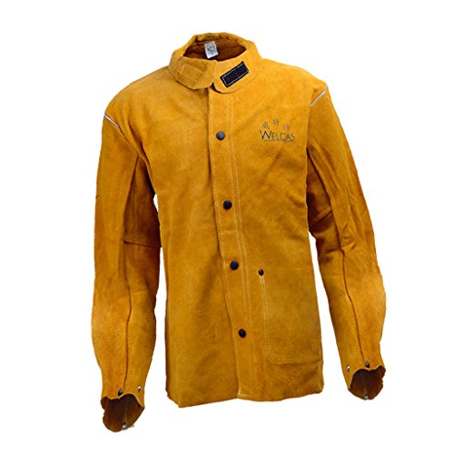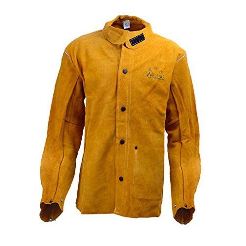 Flameer 高品質 溶接ジャケット+保護手袋 作業用 牛革 耐熱性 防護服 難燃性