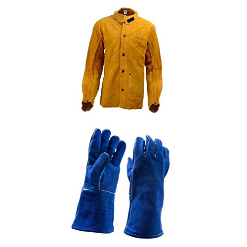 Flameer 溶接ジャケット+作業手袋(35cm) 防護服 2層 M/XL/XXL選択 耐磨耗性 耐火性 耐熱性 牛革 高品質 - M