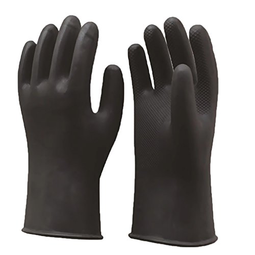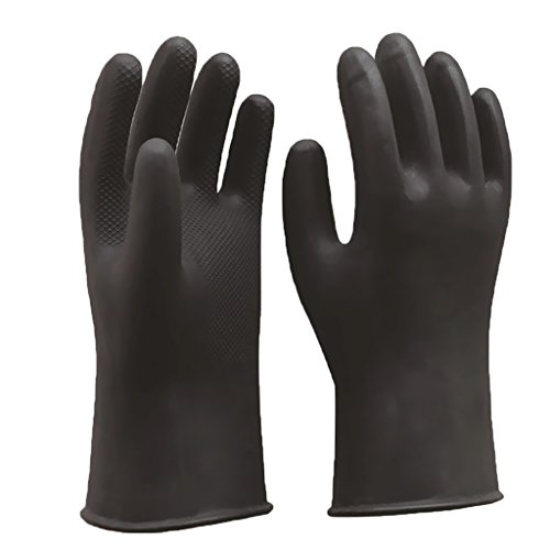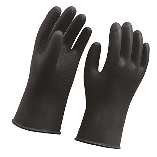 Flameer ゴム手袋 作業グローブ ロング ガーデン 消毒 清掃 家事 工業用 耐酸性 快適 1ペア 全7サイズ 白色&黒色 - ブラック40cm