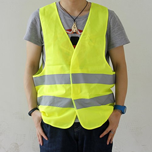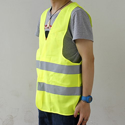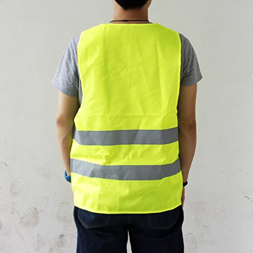 Flameer 夜間 安全作業服 反射ストリップ チョッキ 通気 調節可能 防犯 イエロー&グレー